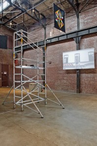 The dual meaning in Alex Villar’s video Breaking into Business – the beginning of a person’s professional career and/or the trespassing on a business’ property – indicates a motivation of opportunity and implies a search for success. Represented in the form of a “vertical reach” and using the everyday urban tool of scaffolding, the performer’s actions retain a sense of ambivalence in terms of legal status. There is no material value gained here and, therefore, no incriminating evidence. The characterization of the subject is therefore suspended and it’s in this terrain of “performative displacement” where Villar sees possibilities to reconfigure a new plausible horizon.